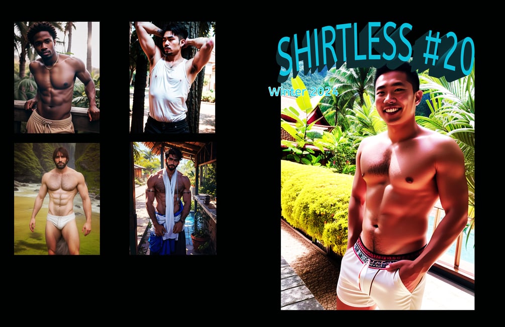 In this edition of Shirtless, a captivating transformation unfolds. The beefcake photography undergoes a distinctive twist as it is skillfully remixed by AI and subsequently refined. The photographer, experimenting with original photos through AI, witnesses a diverse array of outcomes ranging from lifelike renditions to more creatively artistic interpretations. This unique perspective breathes fresh vitality into the photos, offering a novel and enriched experience.